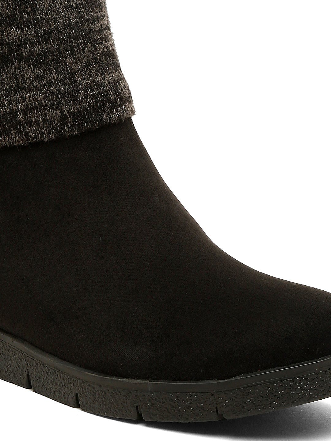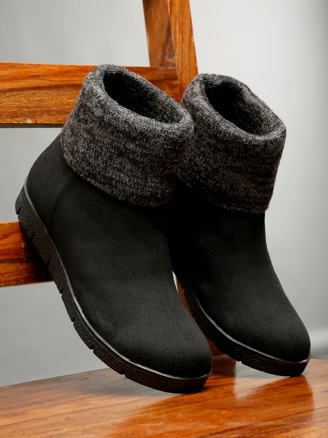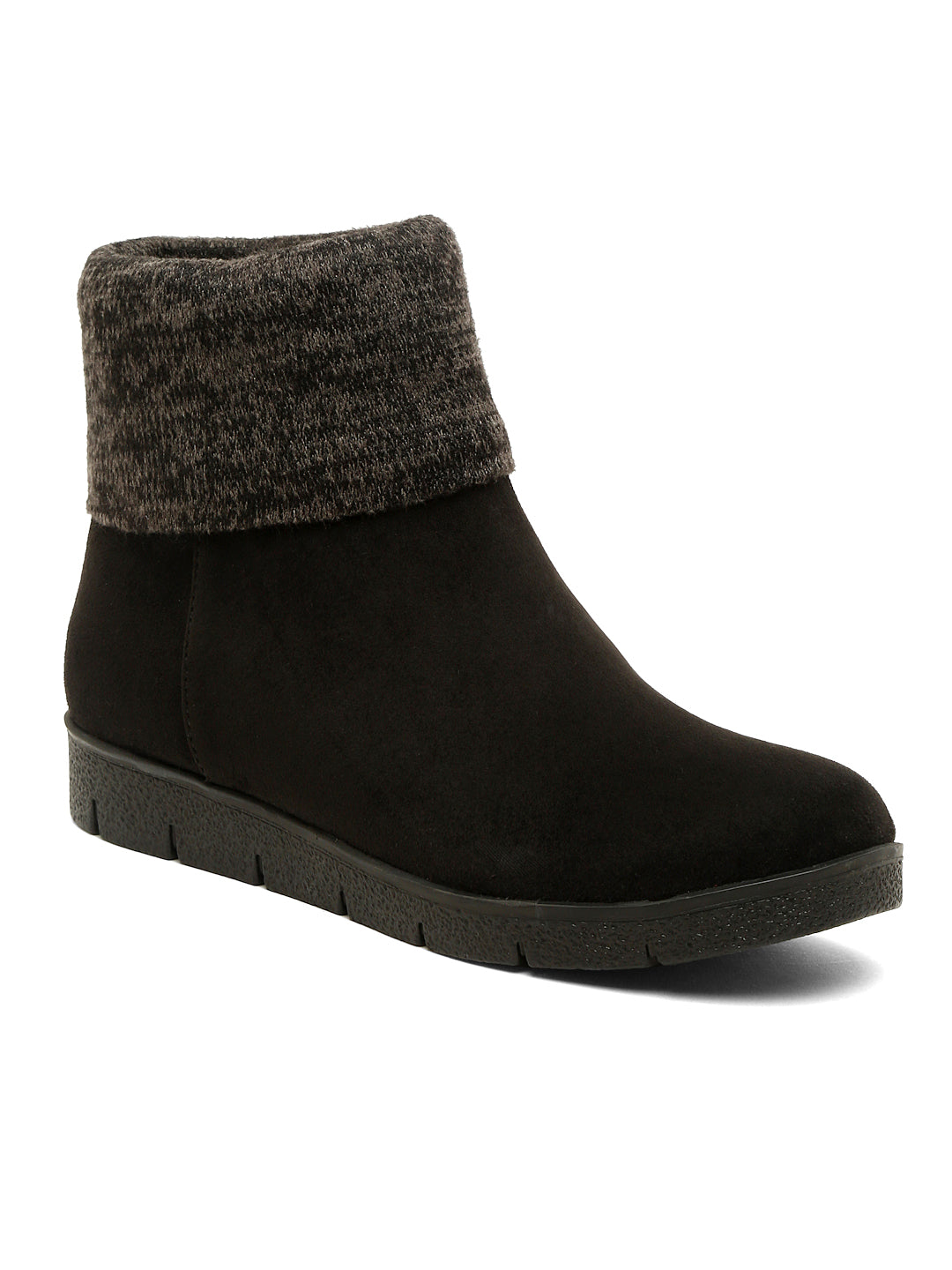 • Stylish Design: These Women’s Black Ankle Boots feature a warm knit cuff and a slip-on design, perfect for cold weather and casual outings.