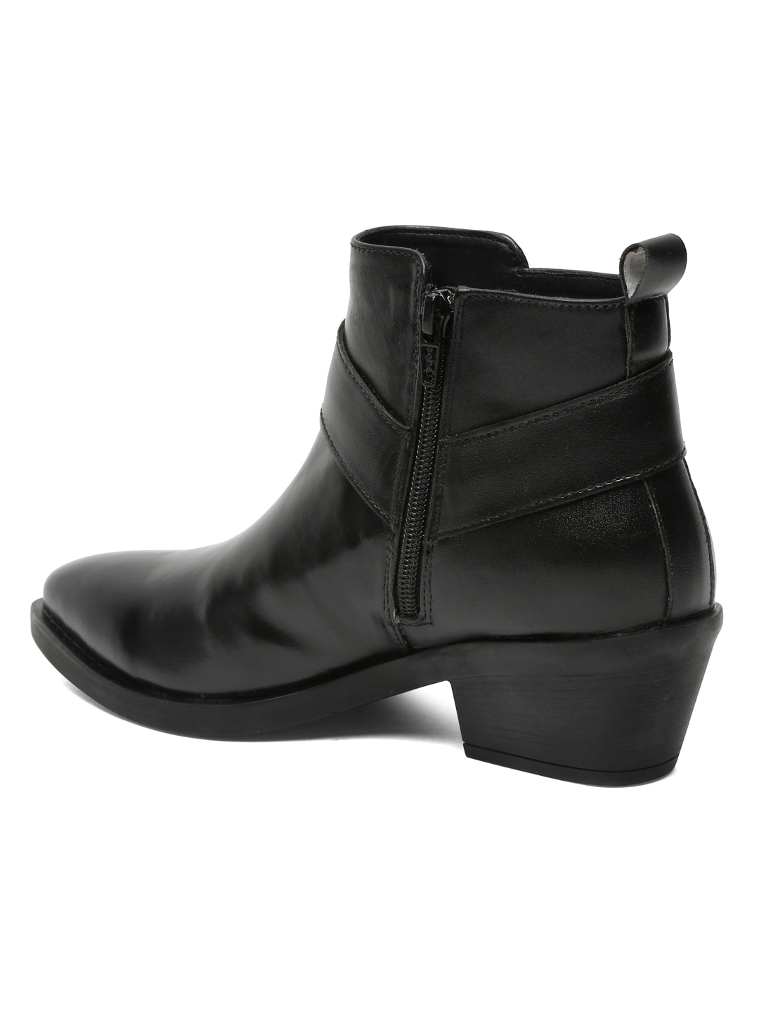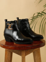 Design: A sleek pair of women’s black ankle boots featuring a convenient zipper closure for easy wear.