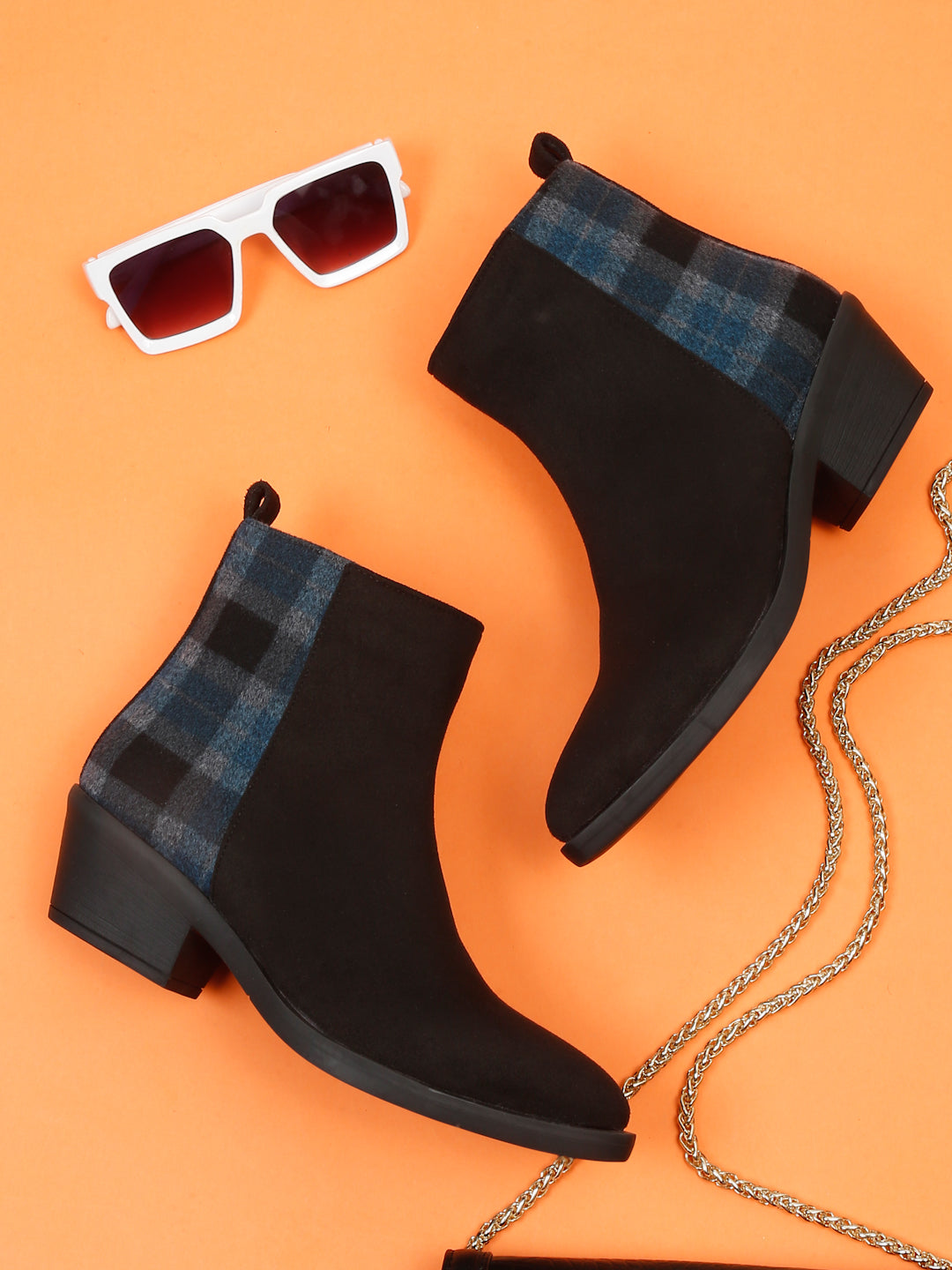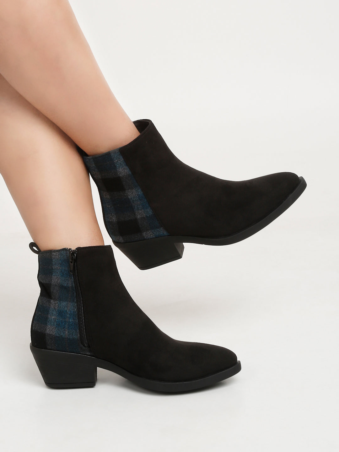 • Ankle-Length Black Boots featuring a convenient Side Zipper for easy wear.