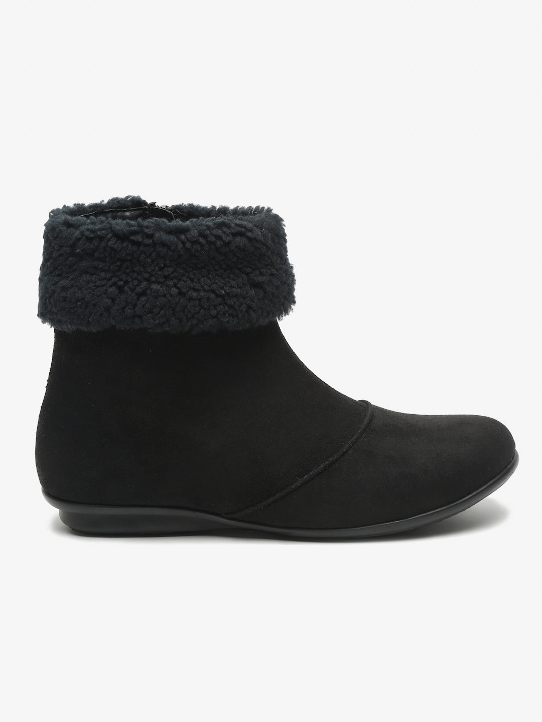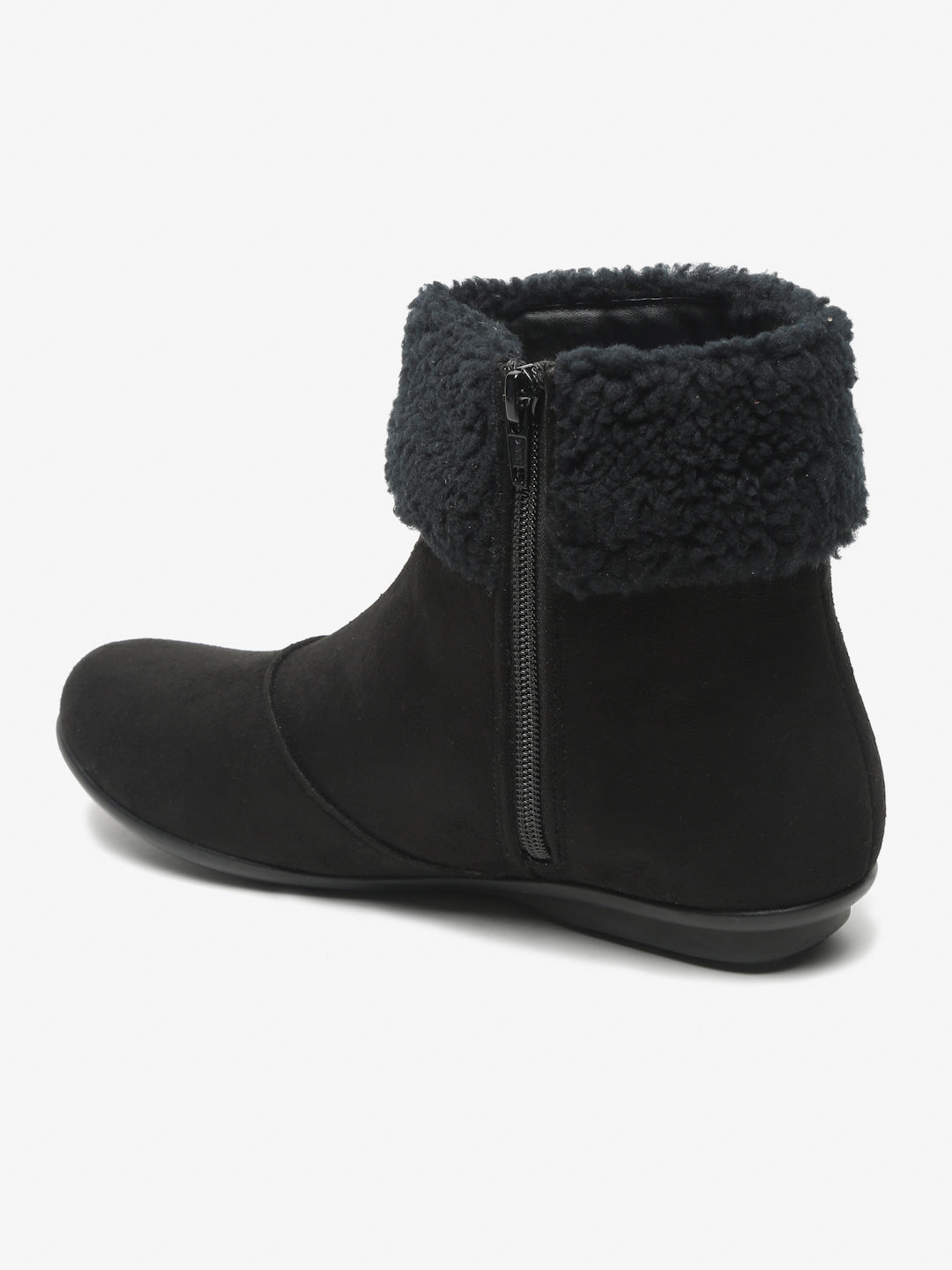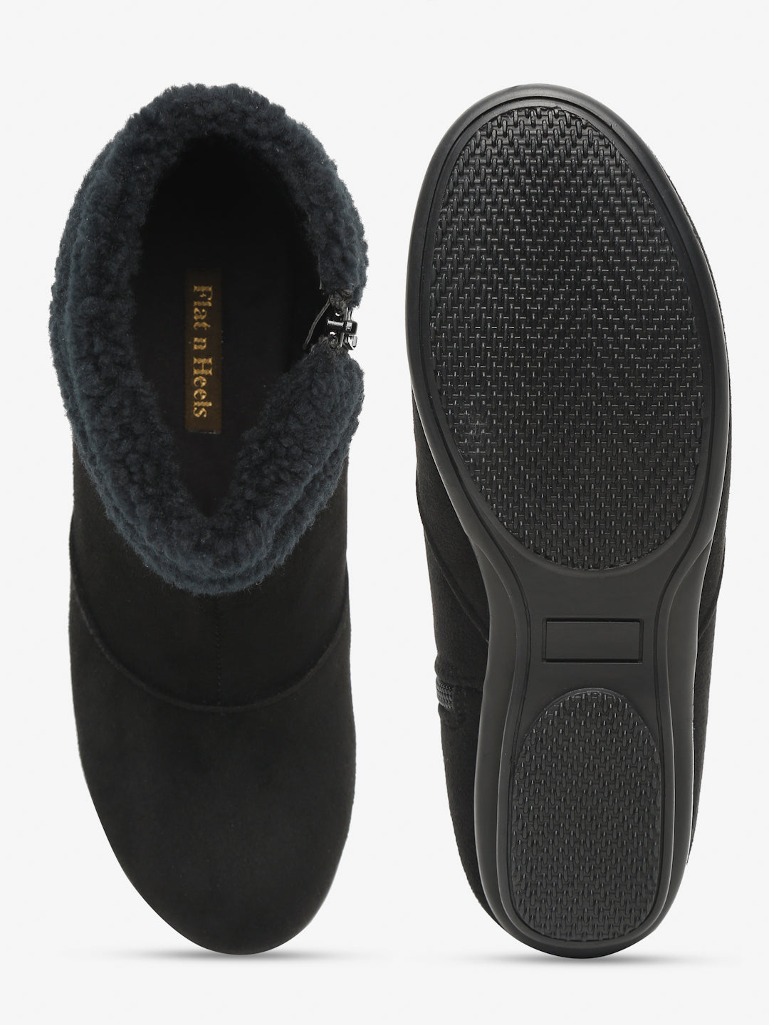 - Design: A stylish pair of black boots featuring a sleek flat heel and convenient side zipper for easy wear.
